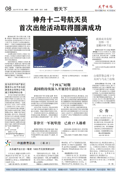 神舟十二号航天员首次出舱活动取得圆满成功
