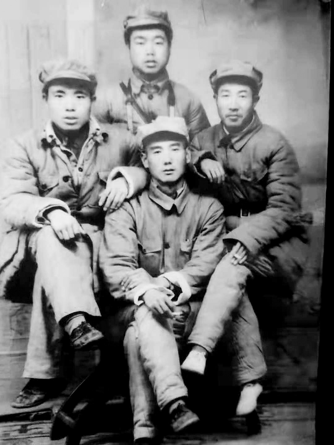 霍俊亭(前中)和战友的合影照。(李辉义提供)
