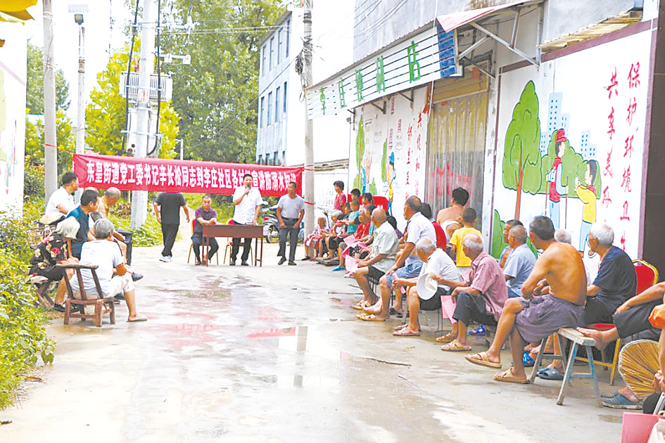 “快点走,书记到咱村开会来了,听听讲的啥。”7月16日,平舆县东皇街道李庄社区崔房庄村民崔新建边走边对邻居说。