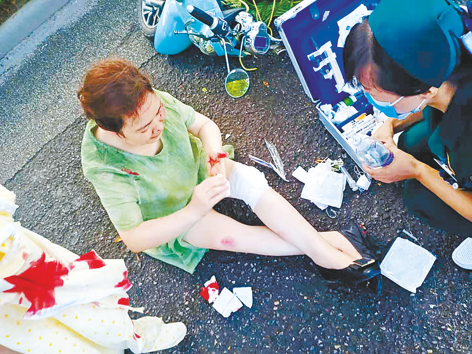 受伤的张女士得到帮助。