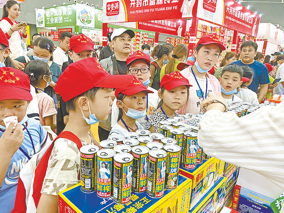 当日上午,晚报小记者部组织的本报部分小记者来到驻马店国际会展中心2021第三届中国食品交易会现场采风,并对前来参展的客商进行采访。
