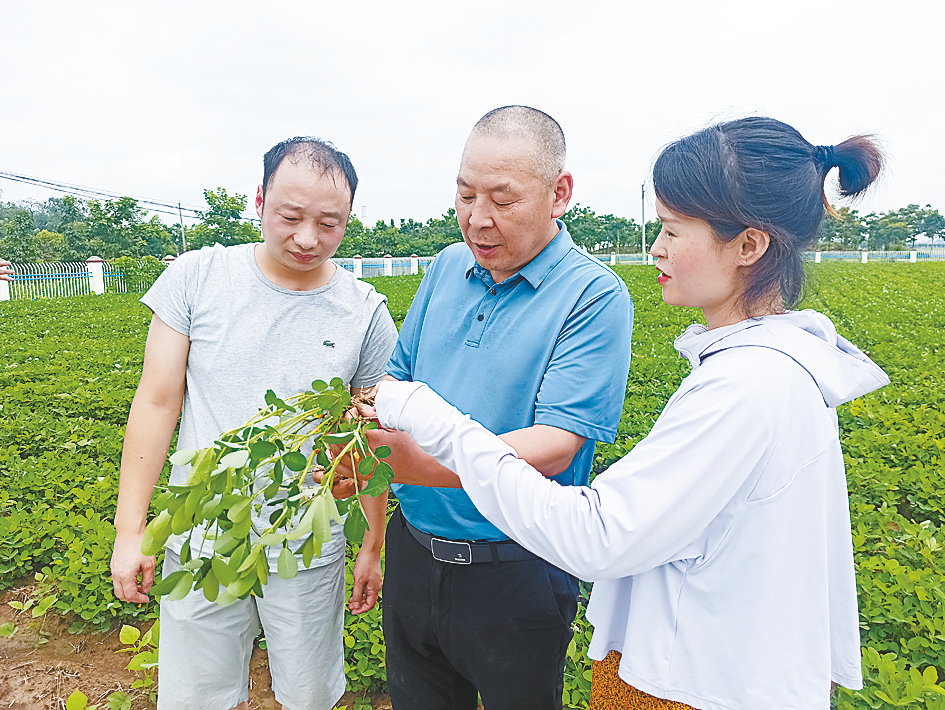 本报讯(文/图 通讯员 武建华马利军)7月21日上午,驻马店市气象局联合正阳县气象局组成调查组,深入正阳县花生天地农业产业联合体王大塘基地,对花生长势进行实地调查。