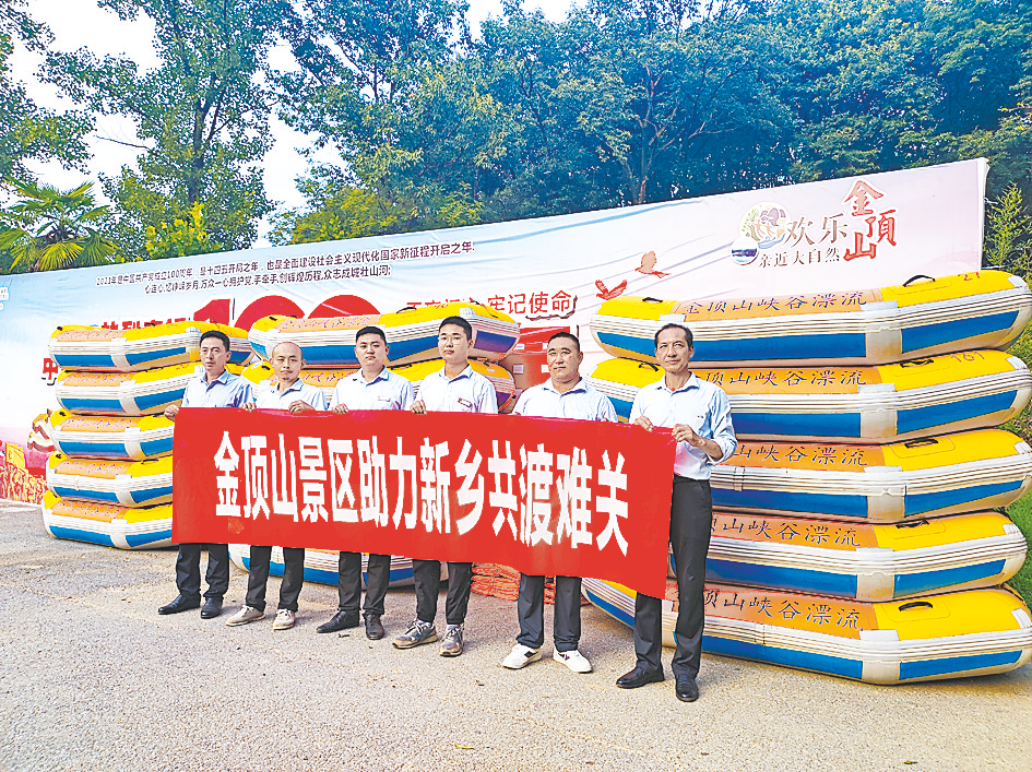 本报讯(文/图 全媒体记者 陈宁)7月24日,金顶山景区工作人员连夜组织救生船、救生衣等救援物资驰援新乡(如图)。
