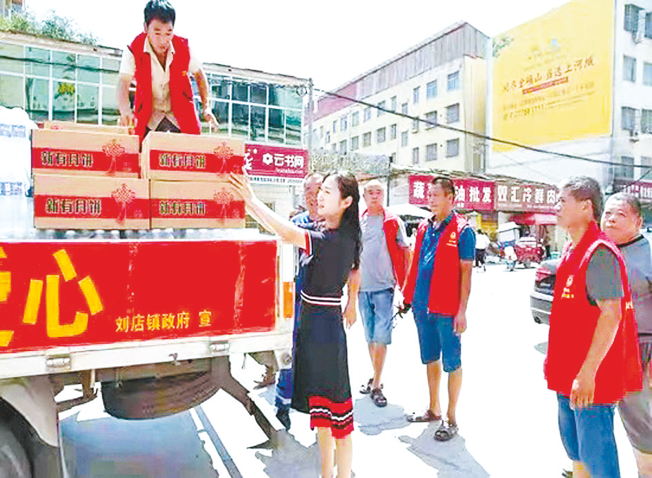 本报讯(文/图 全媒体记者 张新义 通讯员 张昊颖)连日来,我省遭受到特大暴雨侵袭,多地受灾严重,灾情牵动着确山县刘店人民的心。“同志,我要捐款。”“我家是开超市的,可以捐矿泉水。”7月26日上午,确山县刘店镇街头人头涌动,听说市劳模张大生要来刘店运输救灾物资,村民们自发围上前来,希望捐献物资,奉献爱心,帮助卫辉市渡过洪涝难关(如图)。