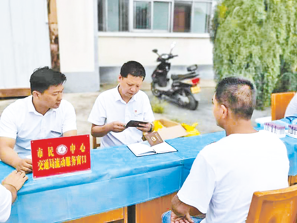 今年以来,市民中心交通局窗口以“群众需求”为服务导向,以“群众满意”为评价标准,加大流动窗口服务力度,零距离提供行政审批服务,受到市场主体好评。 (全媒体记者 张勇)