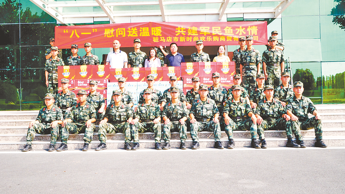 本报讯(全媒体记者 薛顺启)炎炎夏日送关怀,共建军民鱼水情。八一建军节到来之际,7月29日,驿城区市场监督管理局联合新时尚欢乐购商贸有限公司工作人员走进武警驻马店支队执勤一大队执勤中队,向全体武警官兵致以节日的祝福和诚挚的问候,并送去慰问物资(如图)。