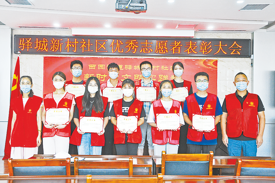 8月24日,在驿城区西园街道驿城新村社区,9名优秀大学生志愿者接到了由社区负责人颁发的荣誉证书(如图)。这既是对他们多日来参与疫情防控工作的肯定,也是一种激励,希望他们今后更加积极地投身志愿服务活动。