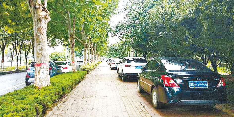 本报讯(文/图 全媒体记者 王永良 张丽丽)“好好的人行道上却停满了机动车,既影响通行又碾坏了道砖,希望相关部门对这种乱停乱放的行为进行治理……”8月23日,市民张女士拨打本报新闻热线2830110反映,无序停放在市区人行道上的车辆“堵路”又“堵心”。