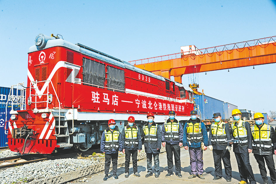 驻马店站至宁波北仑港铁海联运集装箱班列。(资料图片)