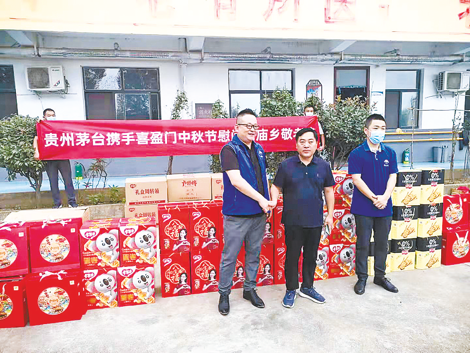 为弘扬中华民族尊老敬老的传统美德,近日,驿城区胡庙乡政府携手贵州茅台、喜盈门爱心企业,为敬老院老人送去月饼、饼干、蛋卷、八宝粥等慰问品,并送上节日祝福。