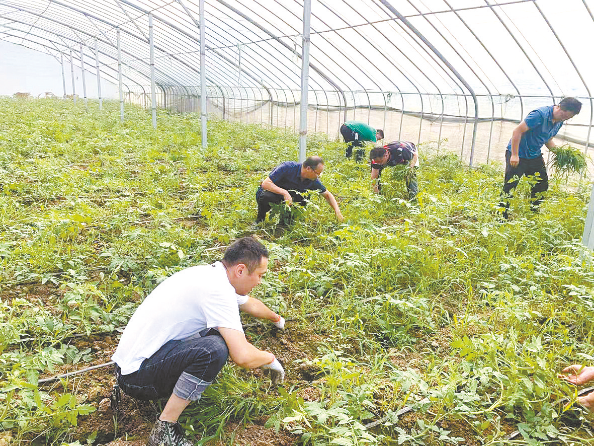 本报讯 (文/图全媒体记者田瑞德通讯员余珠)“红绿掩映多农事,烈日撒辉照棚中。”时下,正是温棚番茄育苗搭架的关键时期,近日,走进确山县双河镇陈上庄村的温棚番茄种植基地,看到温室大棚内一派忙碌的景象,干部群众正在棚内整理土地、清理杂草(如图)。