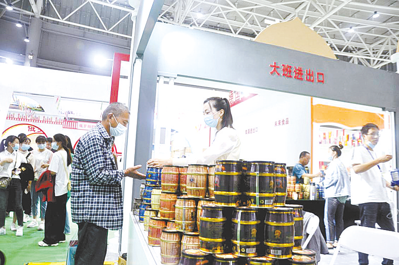 在国际农产品加工产品D展馆,51个国家的特色农产品琳琅满目、应有尽有,各展位前销售火爆、人头攒动。参观者不仅能买到各国的美食,还能了解各国的文化及特色产品。“品种全,样式新,有国际范儿。”来自郑州的客商谭欣说,“在这里就能尝遍多国美食,感觉不错。”