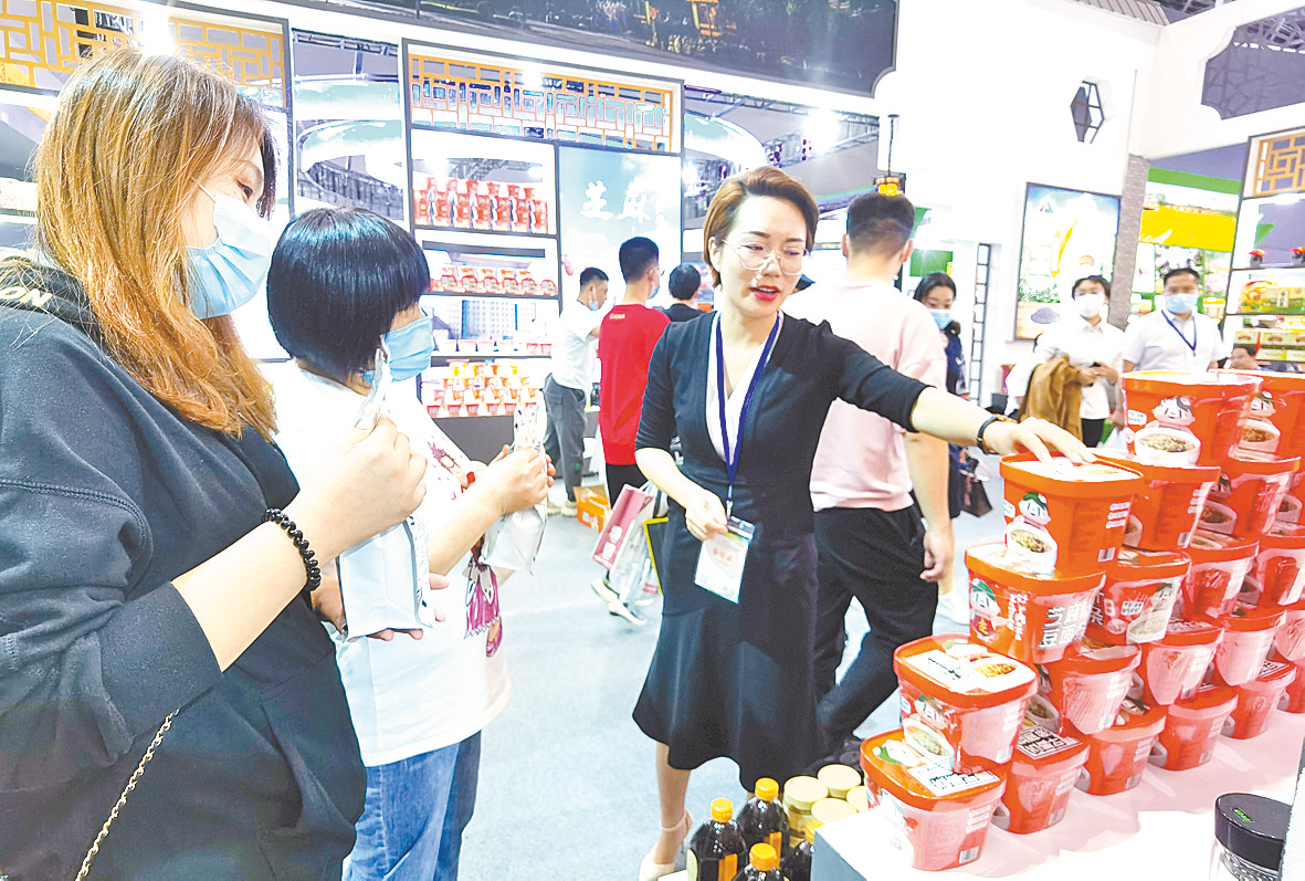 本报讯(文/图 全媒体记者 王晓晶)“真香,是咱驻马店地道芝麻叶豆面条的味儿……”“这比方便面好吃多了,非油炸还健康……”9月26日,在第二十四届中国农产品加工业投资贸易洽谈会上,位于B展厅的平舆县展馆,一群顾客边品尝边争着购买速食产品芝麻叶豆面条。