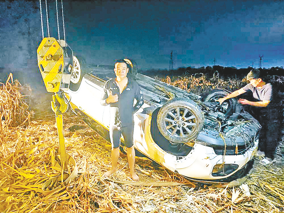 本报讯(文/图 媒体记者王永良)近日,驻马店市红十字蛟龙水上救援队接到周口市项城市警方电话,称一辆轿车不慎滑入河中,请求协助打捞。