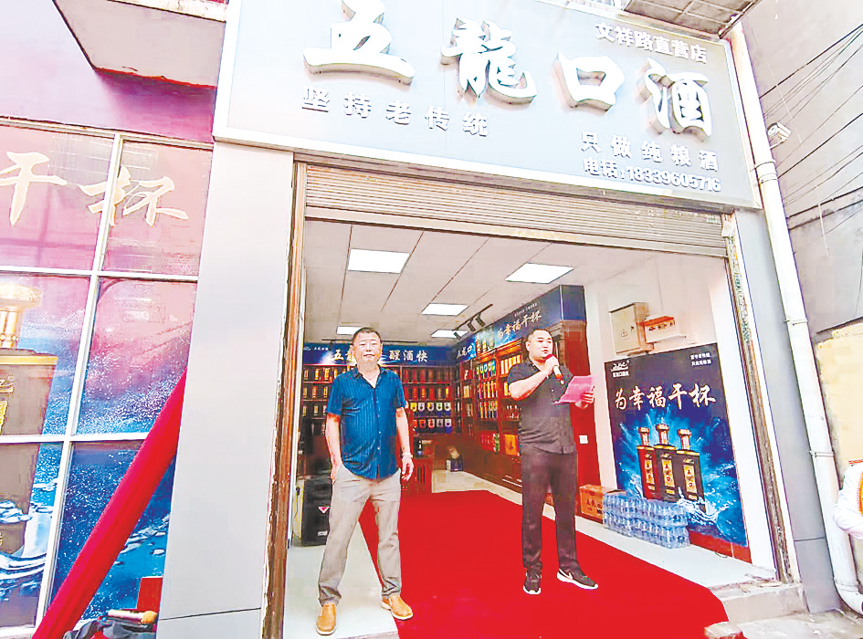 本报讯(文/图全媒体记者胡霄飞)9月29日上午,驻马店市区文祥路五龙口酒直营店开业(如图)。河南五龙口酒业总经理贾会、五龙口酒直营店总经理刘成勋等参加开业庆典。