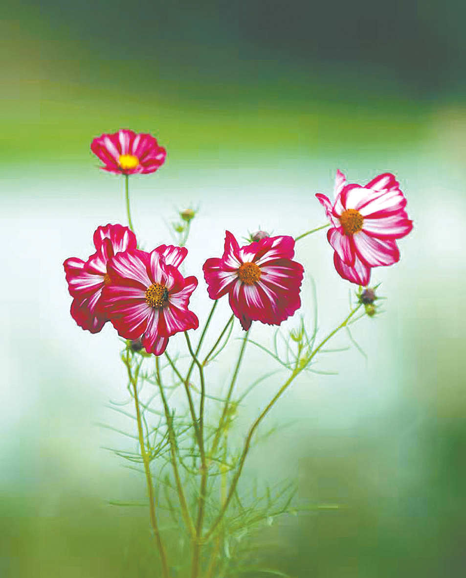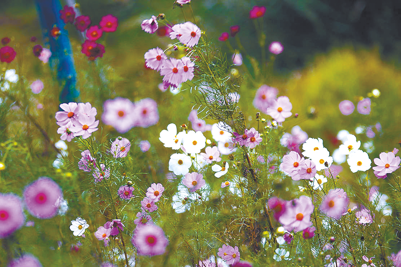 的、紫的……一片片格桑花开得鲜艳,用色彩渲染着练江河的秋色。花的幽香飘进游客的心田,人们身临其境感受格桑花带来的美艳与浪漫。