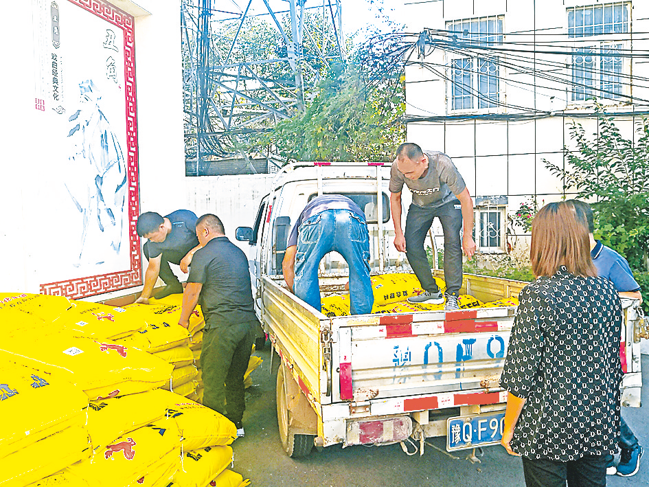 本报讯(文/图 全媒体记者袁敏 通讯员 曾庆杰)日前,开发区关王庙乡民政所工作人员和乡村党员干部为辖区70户困难残疾人家庭发放化肥200袋(如图)。