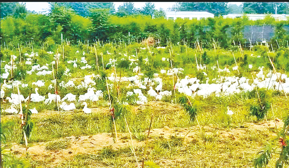 金秋十月,果实飘香。日前,在上蔡县黄埠镇常庄村顺耀种植专业合作社的近200亩冬桃基地里,记者看到的是一幅欣欣向荣的景象,林下有草,草养白鹅,鹅粪养树,林果、白鹅双丰收(如图)。以草养鹅、鹅粪肥林为一体的循环生态模式,奏响了生态致富曲。