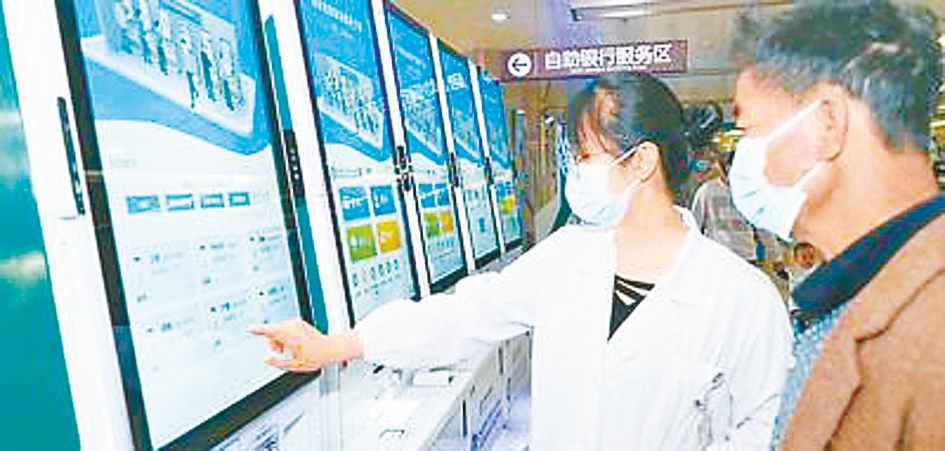 云南昆明医科大学第二附属医院工作人员在教市民操作自助设备。