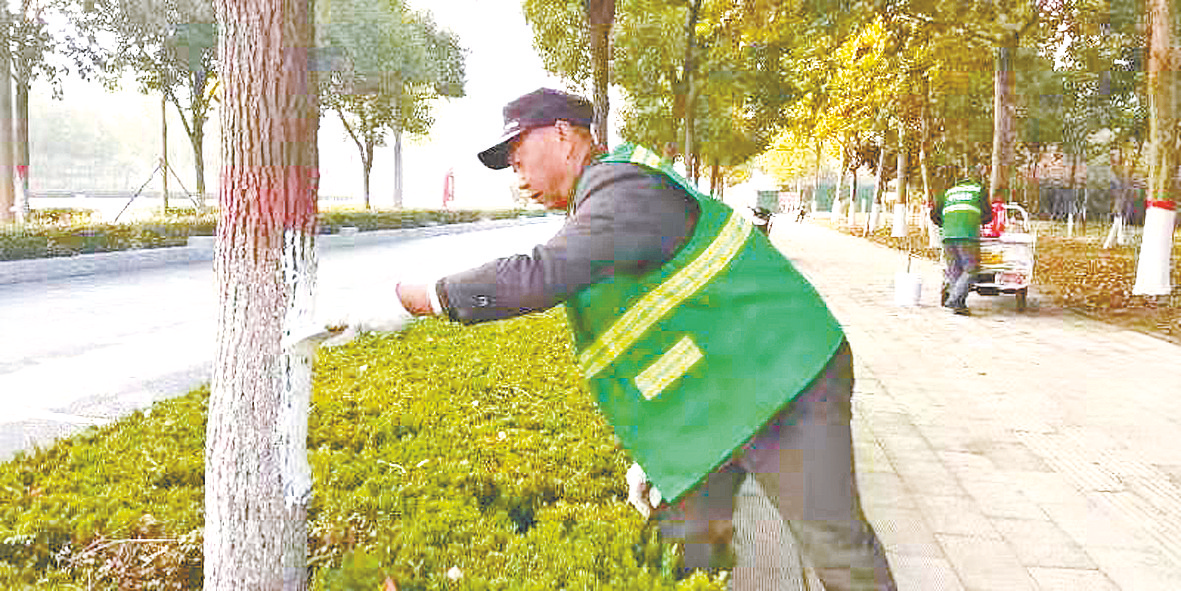 为确保涂白后的景观效果,园林工人作业时,对树干涂白的高度进行严格控制。整齐划一的涂白效果,成为中心城区道路一道别致的风景线。