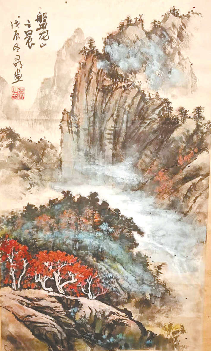 《盘龙山云晨》描述的是云蒸霞蔚的秋景,近处红叶烂漫,远处云雾缭绕。画家的心境跃然纸上,令人神往。