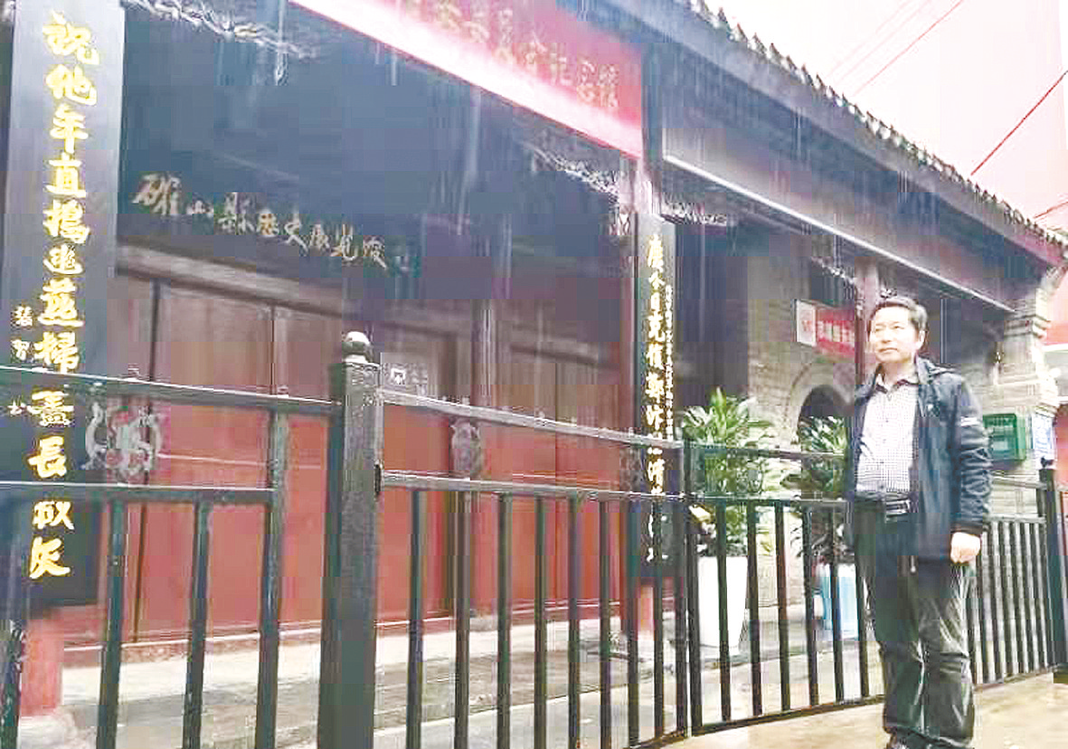 “庆今日克复郑汴澄清黄河水,祝他年直捣幽燕扫尽长城灰”——在确山县城建设街东段,确山临时治安委员会纪念馆前的一副鎏金对联,遒劲有力,正是抗日民族英雄杨靖宇将军所作,反映他对北伐军攻占郑州、开封,武汉政府二次北伐取得胜利的喜悦心情和将反帝反封建军阀革命斗争进行到底的热切愿望。而书写这饱含爱国热情对联的正是确山县文化馆的老画家张习明。