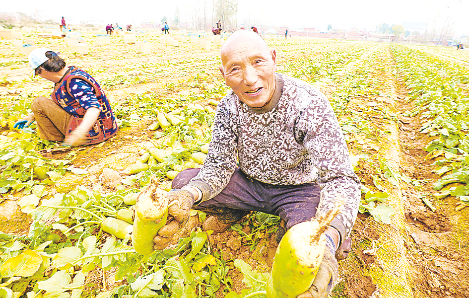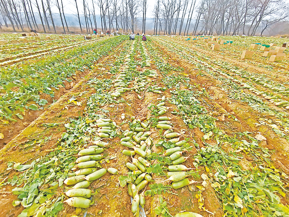 种植户李文武告诉记者,今年,他流转土地120亩试种水果萝卜。由于今年雨水多,萝卜播种晚,虽有所减产,但亩产量仍达3500公斤,预计年底上市每公斤2元左右。