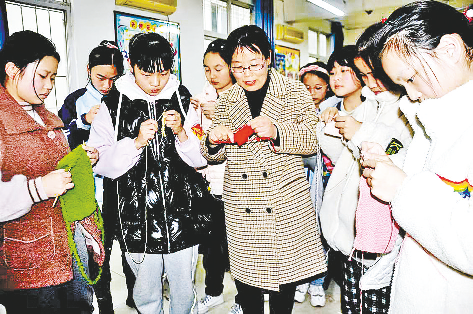 线织社团的孩子们在老师的指导下,也能织出多彩的围巾和手套。