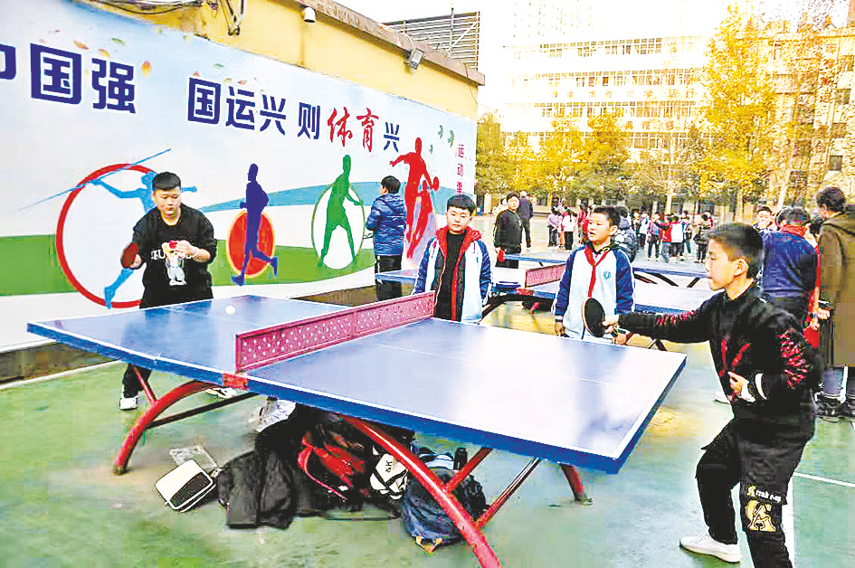 11月26日下午4时20分,下课铃声响起,驻马店市第三小学校园内一片欢腾,学生们井然有序地开展形式多样的活动:跳绳、踢毽子、乒乓球、扔沙包、跳皮筋等。孩子们热情高涨,满脸笑容,活泼可爱,展示着该校学生朝气蓬勃、健康奋发的精神风貌。