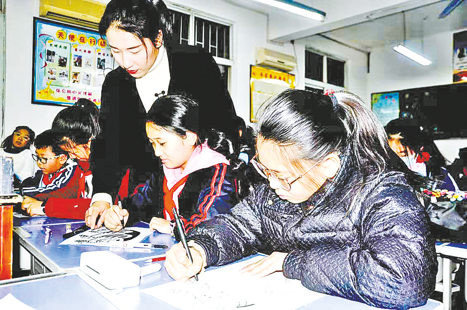 “‘双减’政策,真正把我们从繁重的作业、补课压力中解脱出来。课堂上,老师精彩高效的讲解让我们变得积极主动,不仅减负而且增效。课后的延时服务,老师有针对性地为我们答疑解惑,我们在学校就能完成作业,回家后有更多的时间进行自主活动。比如帮爸爸妈妈做一些力所能及的事情,进行感兴趣的体育锻炼,或阅读课外书。社团活动更是五彩缤纷!我参加了喜爱的诗词社团,不仅拓宽了我的诗词储备量,还提高了我的朗诵水平和鉴赏力。”驻马店市第三小学四(7)班同学胡稳婧说。