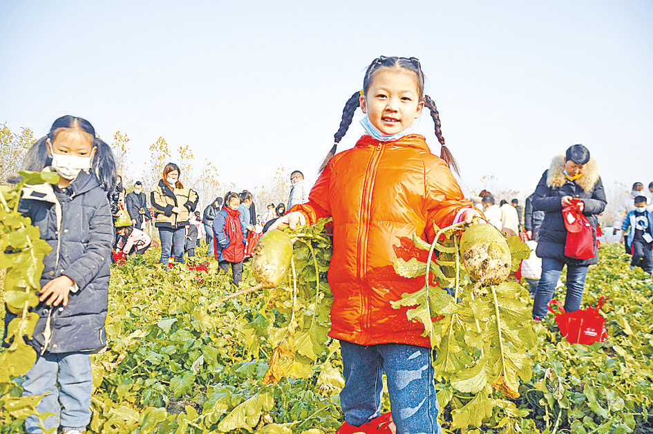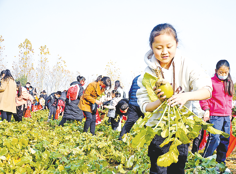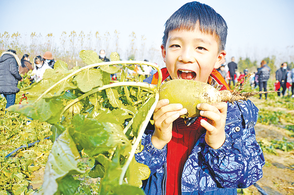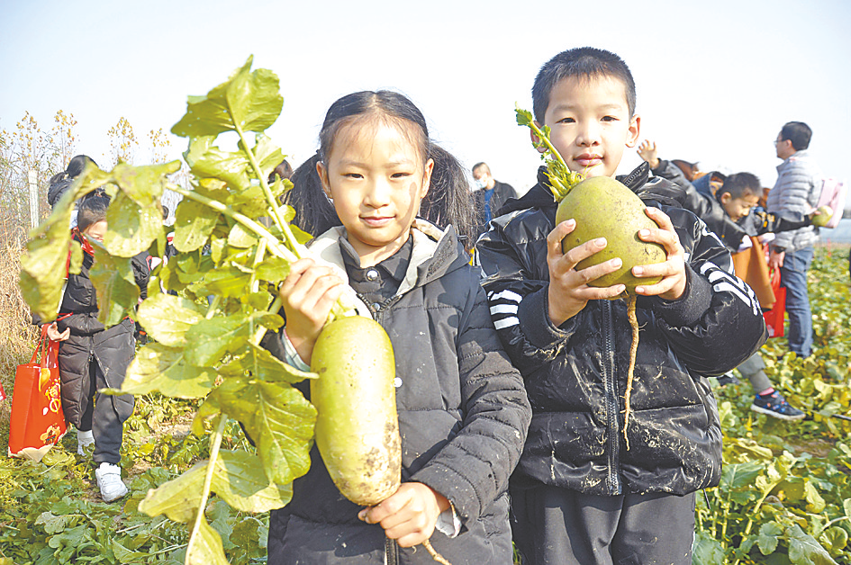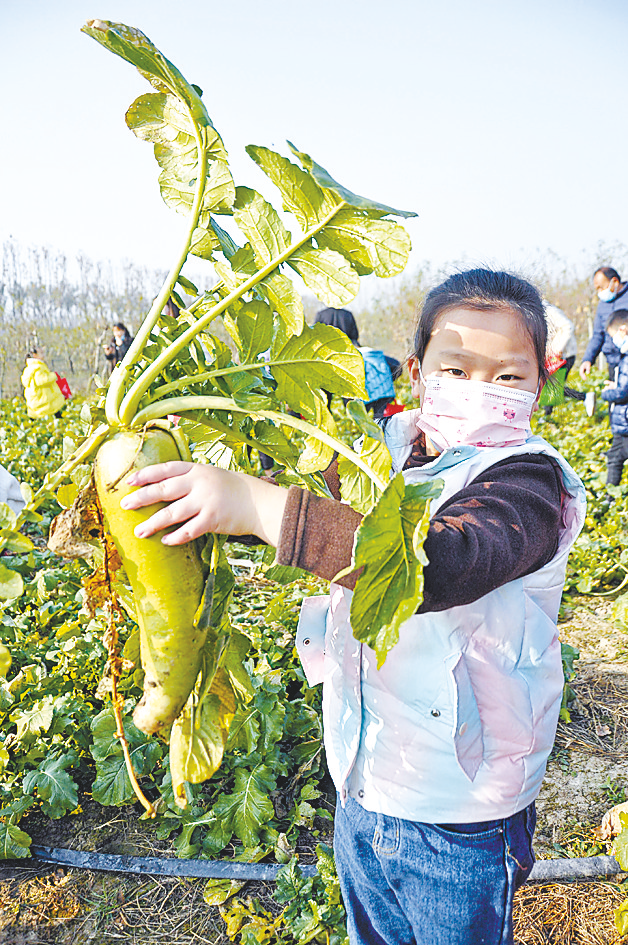 记者看到,小记者们个个收获颇丰。有的小记者一边整理战利品,一边向农庄主人高先生提问:“高伯伯,萝卜吃了有什么好处?”高先生笑着对孩子们说:“萝卜不仅能帮人下气、消食,还能除疾润肺、解毒生津,好处多着呢。”