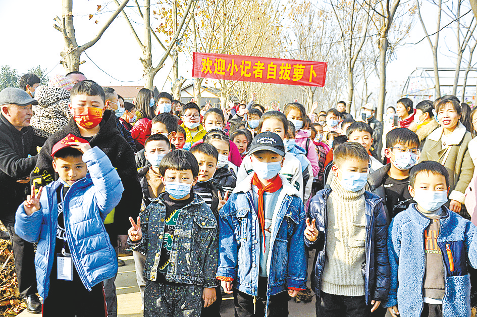 “拔萝卜,拔萝卜,嗨吆嗨吆拔萝卜……”11月27日上午,驻马店西塘渔村生态农庄高先生的萝卜田里,不时传来欢笑声,参加本报“农田体验”的60名小记者和家长,在地里忙得不亦乐乎,有的还边拔边吃。