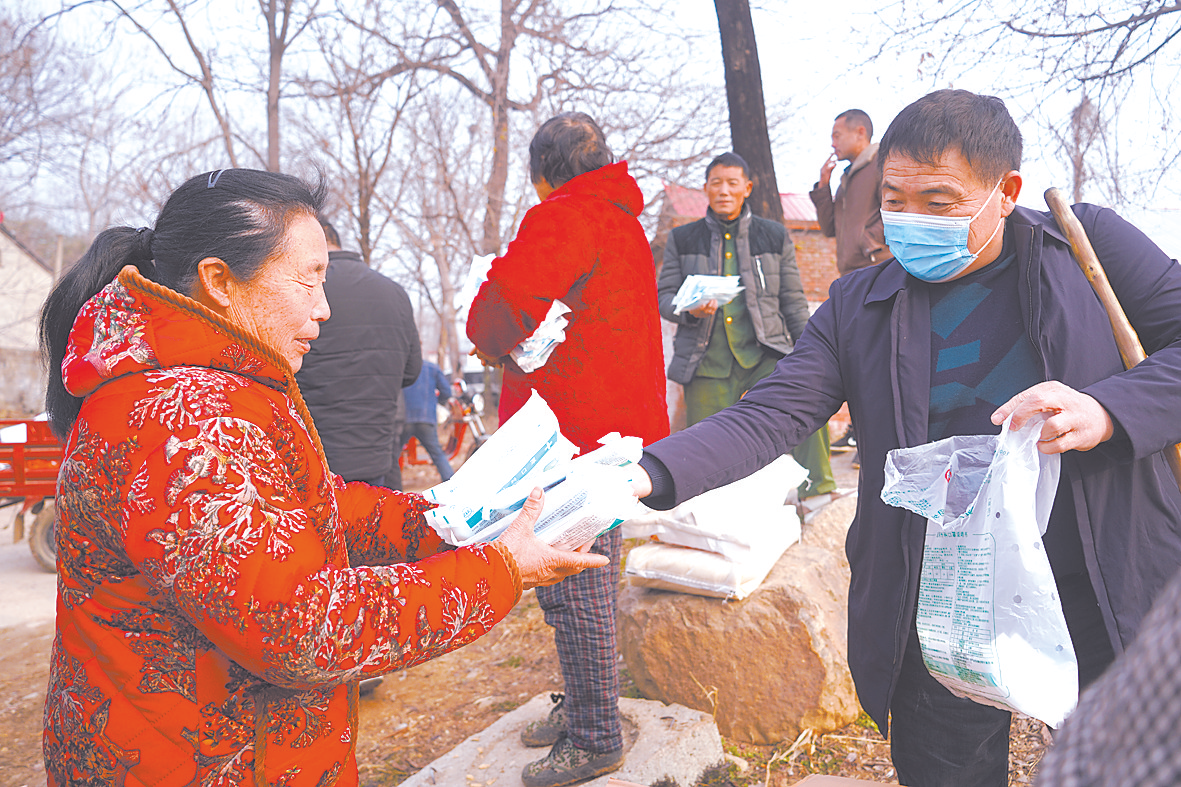 何文礼为村民分发口罩。