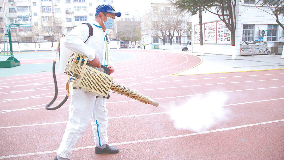 本报讯(文/图 全媒体记者 张龙 通讯员 李鹏飞)为进一步加强疫情防控工作落实,坚决阻断病毒的侵扰,确保全体师生春节返校后有一个健康、卫生、安全的学习生活环境,1月14日,驻马店实验小学四个校区对校园内外环境展开了细致全面的卫生消毒消杀工作(如图),为学校安全防疫工作筑起一道坚实的屏障。