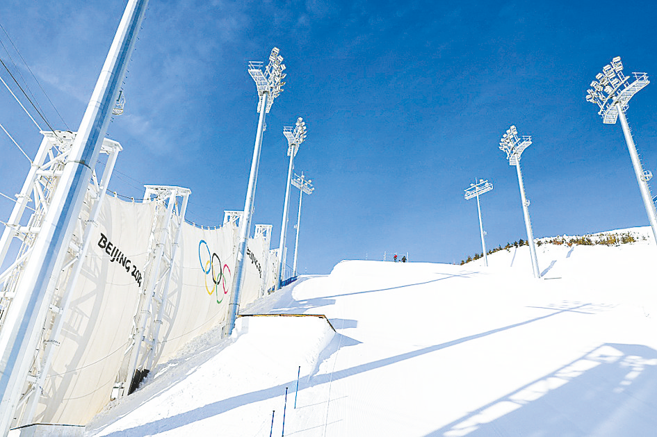 1月19日拍摄的张家口赛区云顶滑雪公园的防风墙。