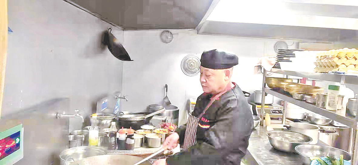 正在厨房炒菜的彭栋印动作麻利,下锅、翻炒、调料,不一会儿,一盘菜就做好了。彭栋印说,每天看到那么多人奔着他的拿手菜而来,他很是自豪。