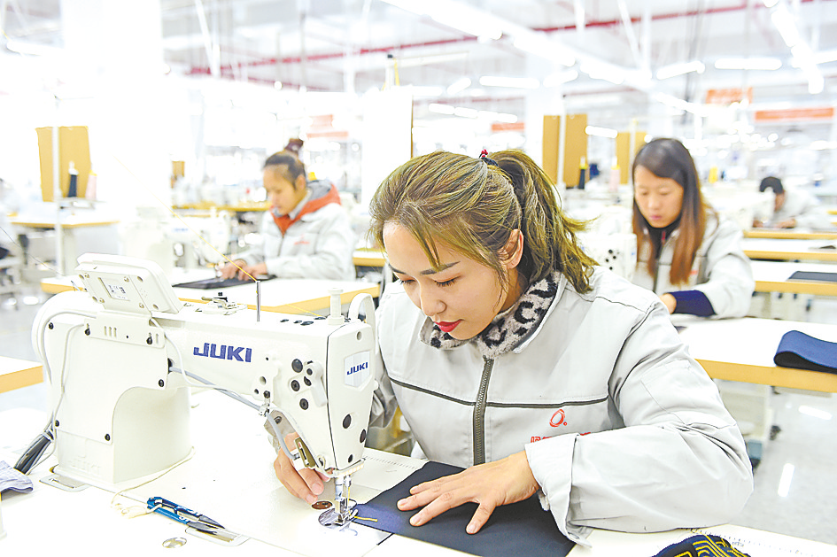 一排排整齐的机器马力全开,工人们赶制订单如火如荼……2月7日,大年初七,记者走进西平县嫘祖服装新城领秀服饰的生产车间,看到了一派繁忙的景象(如图)。