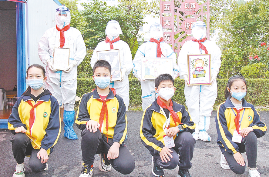 一身白衣奋斗在医疗救治一线,奔赴在基层社区、交通卡点、大街小巷,他们是人民最好的“守护者”,他们平凡而伟大,在不同的岗位上默默坚守、无悔付出。“感谢你们的付出,感谢你们守护千家万户的健康。”小记者们用坚定的话语表达了对医护人员的敬佩和感谢。