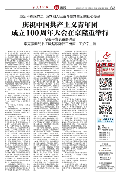 庆祝中国共产主义青年团成立100周年大会在京隆重举行