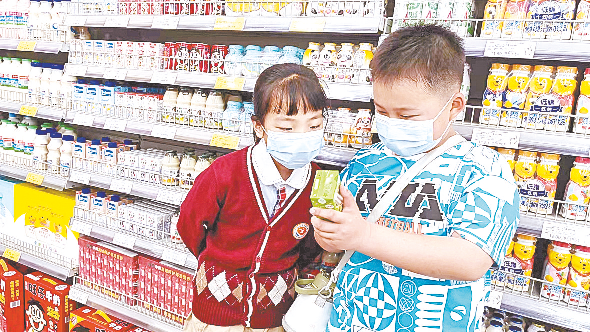 学生走进超市(如图),现场学习如何看食物标签,选择健康食品。