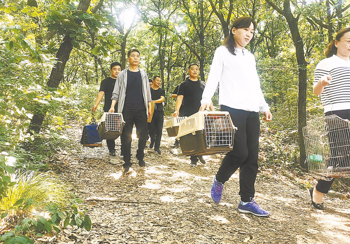 本报讯(文/图 全媒体记者 王建成)5月24日,市林业局野生动植物保护科、市野生动物救护站在确山县薄山森林公园举行了一场鸟类放飞活动。猫头鹰、画眉、苍鹭、八哥、虎斑地鸫共计15只康复后的珍稀鸟在工作人员以及志愿者的共同见证下,回归自然。望着曾经和自己朝夕相处的“宝贝”渐渐飞远,市野生动物救护站站长赵艳梅眼睛湿润了。