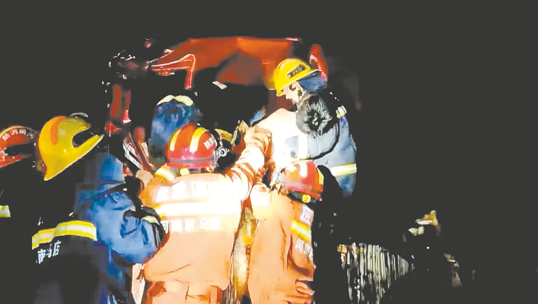 本报讯(文/图 全媒体记者高琳琳)5月23日22时30分,泌阳县消防救援大队指挥中心接到报警称:许广高速103公里处发生车祸起火,有人员被困,急需救援。接警后,消防救援人员迅速出动,最终成功将伤者救出(如图)。