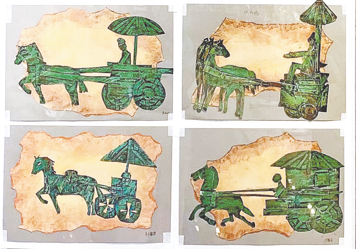 “天中文脉传承与畅想”少儿美术作品擦色版画、手工拼贴《铜马车》。