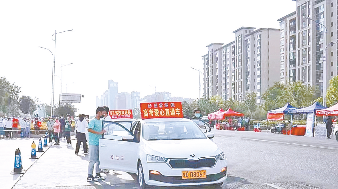 在考点外,驻马店通泰驾校高考爱心直通车的标识十分醒目。为方便考生和家长辨识,驻马店通泰驾校参与爱心送考的车辆均在车顶张贴了“高考爱心直通车”字样的标识,免费为考生提供接送服务,帮助广大考生安全、快捷、准时抵达考场。