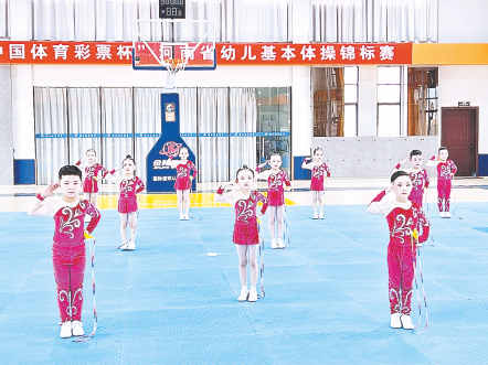 本报讯(文/图 全媒体记者张龙 通讯员 李鹏飞)6月7日~8日,由河南省体育局、省教育厅联合主办,省体操运动管理中心、省体操运动协会等单位承办的“奔跑吧·少年”2022年“中国体育彩票杯”河南省幼儿基本体操锦标赛在郑州举行(如图)。代表我市参赛的驻马店实验幼儿园48名体操小健将不负众望,一举斩获四个全省一等奖,其中乙组规定操成绩位居全省第一。