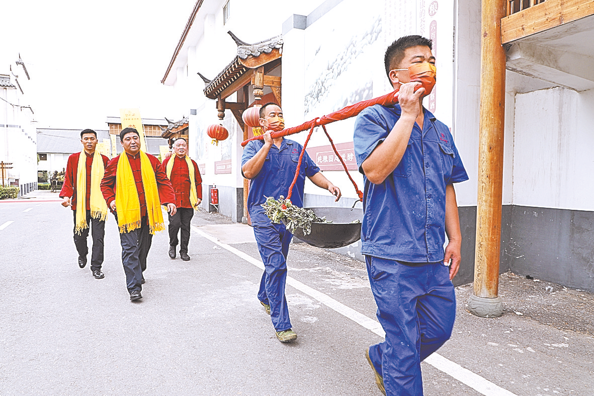 此时,柏树枝、艾草已置于盆中。主祭人点燃艾草后把盆拿进曲仓,进行熏仓之礼,驱虫消毒,然后回到队列。全体参祭人员鞠躬后,礼成。