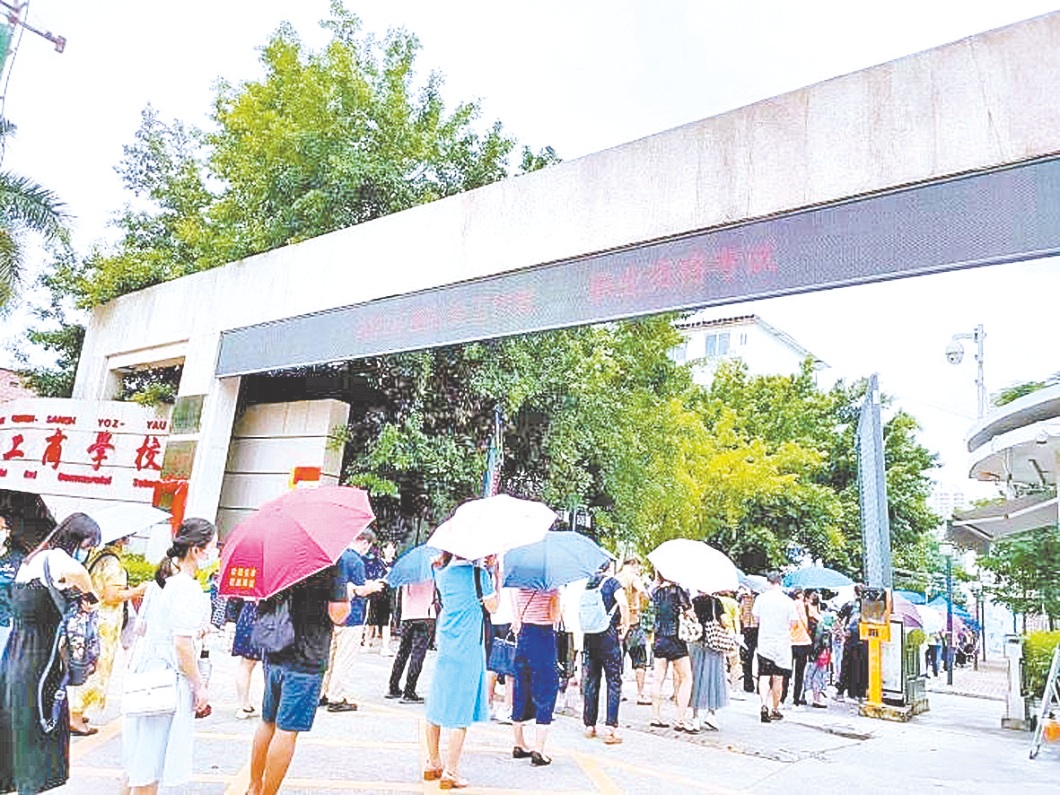 6月18日,在广西南宁一考点,考生排队进入考场。