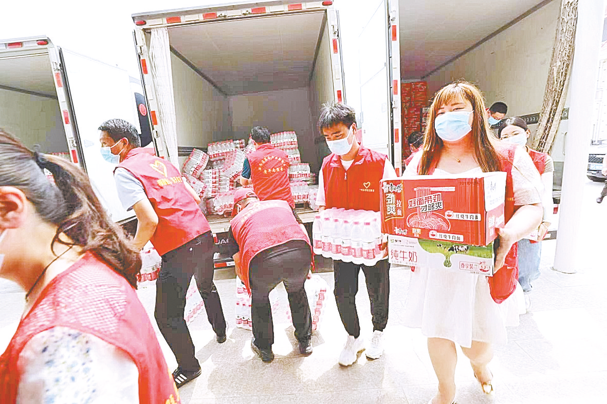 7月19日,驻马店中集华骏车辆有限公司的工作人员来到市产业装备集聚区捐赠抗疫物资,以实际行动支持抗疫工作。