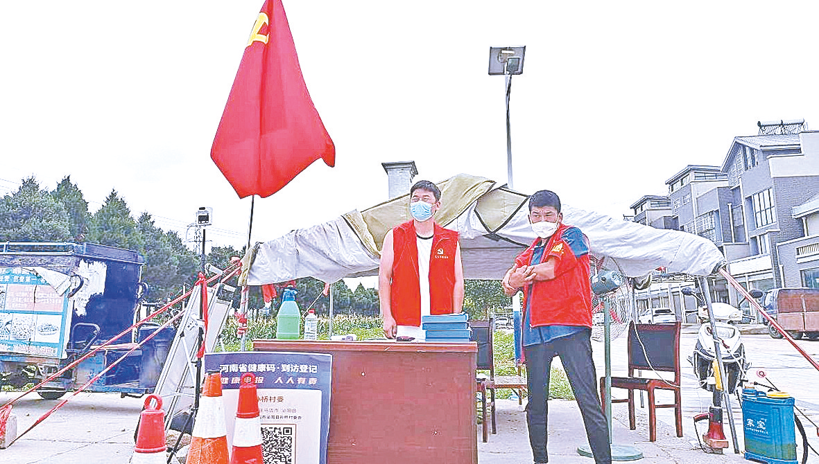 村民滑明江是滑明森的弟弟,也是村党支部委员郑畅的丈夫。在哥哥和妻子的带动下,滑明江积极参加疫情防控(如图)。酷暑中,滑明江与村里的志愿者一起冲在核酸检测前沿,同时为疫情防控人员捐赠西瓜近千斤,并和妻子郑畅、哥哥滑明森一起,成为疫情防控中一道全家齐上阵的美丽风景线。