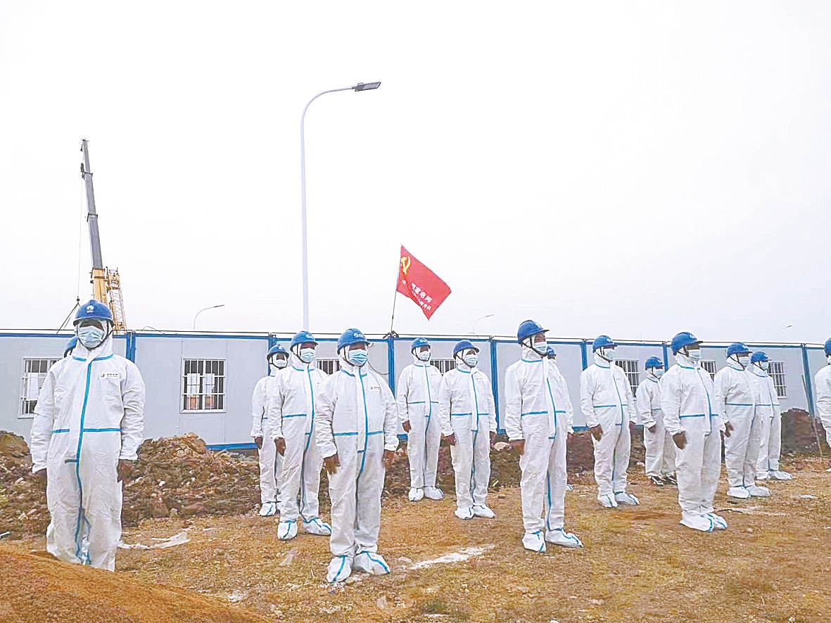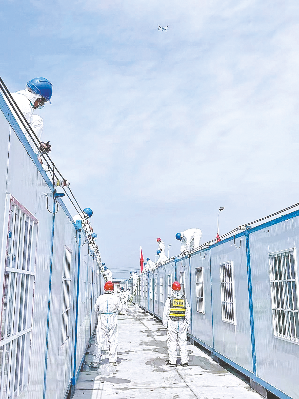 7月18日、19日,在泌阳县方舱集中隔离区低电配电接入项目施工现场,由国网驻马店供电公司、国网泌阳县供电公司50余名党员组成的党员突击队化身电力“大白”,顶高温、战酷暑,连续奋战,为每间方舱及时接通电源,全力确保“舱就位电到位”。